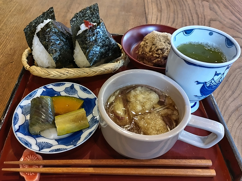 水上駅前の築60年の書店をリノベーションしたブックカフェ。水月夜のおにぎりが食べられる「futamimi」と世界の味が楽しめる「旅する台所」が、日替わりで営業中。